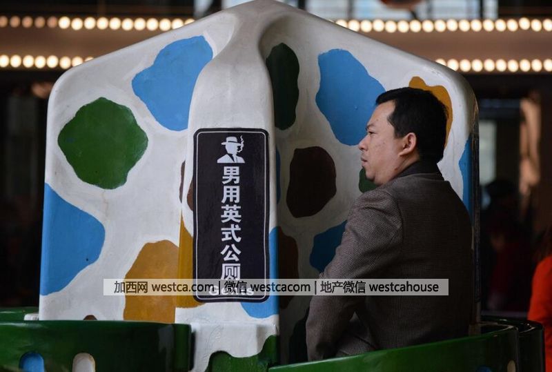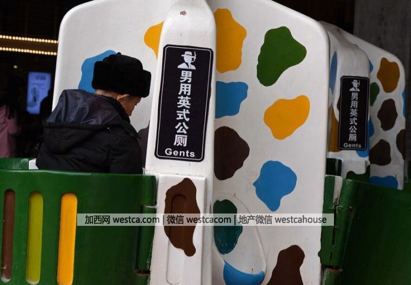 2016年2月20日,重慶,男性市民在男士專用露天公廁站著如廁。