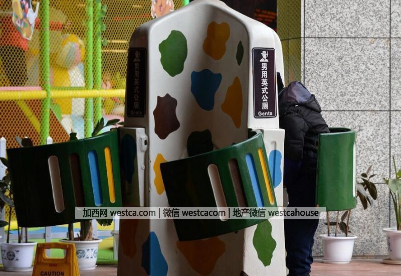 露天公廁外形簡約,肆面透風,只遮擋住重要部分,讓過往市民膛目結舌。