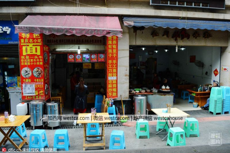 2016年3月14日,重慶市渝北區龍華大道路邊,壹家面莊標價158元/碗的天價小面讓不少市民望而卻步。該店面積不足10平方米,簡易裝修,服務員統壹著裝,牆上價目表顯示,牛鞭面、牛睾丸面等均為158元/碗。來源:東方IC 澎湃