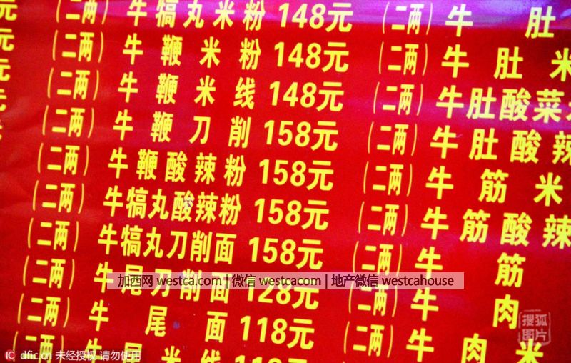 “對於很多重慶人來說,每天必須有壹頓飯是小面”,重慶市小面協會秘書長李傑平表示,外地人來重慶,留下印象的,除火鍋、美女外,還有另外壹種本土美食,就是重慶小面。不少市民直呼:吃不起,有的市民調侃,吃了會上天嗎?圖為標價158元/碗的天價小面。- 新聞來源於其它媒體,內容不代表本站立場!