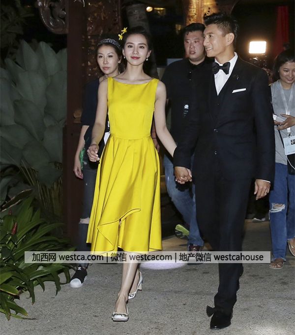 19日晚,吴奇隆和刘诗诗迎接宾客。