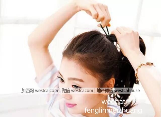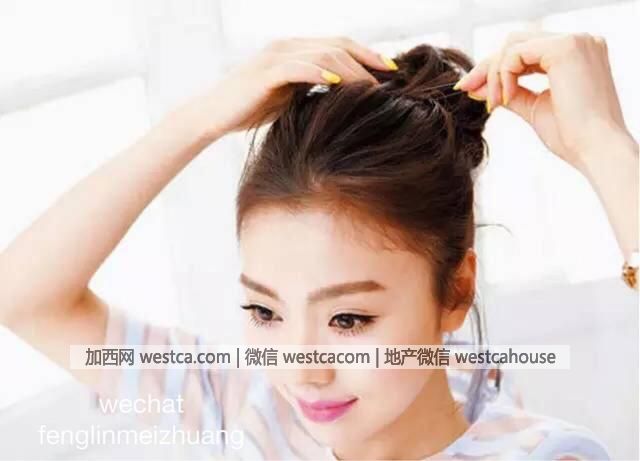 步驟1:和平時扎馬尾辮壹樣,將馬尾辮扎成高聳狀態,記住不要扎得太緊,頭頂要打造蓬松的發感