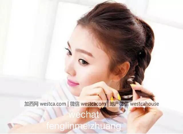 步驟3:將扭好的辮子,再扭成丸子頭,用發夾固定起來