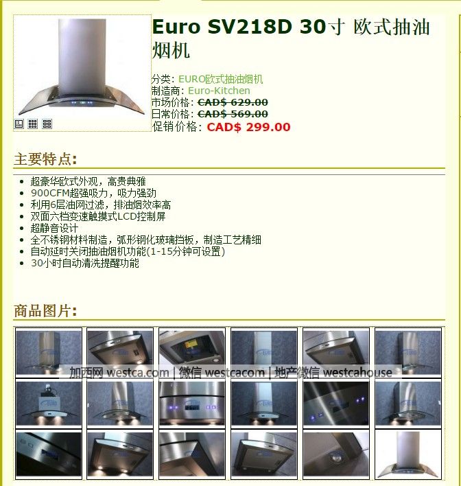 Euro SV218D 型歐式抽油煙機外觀設計高貴典雅,造型流暢,具有900CFM超強吸力,是目前市場上吸力最強勁的抽油煙機之壹: