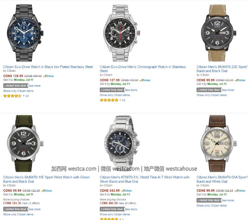 精选Citizen西铁城腕表促销,低至$99.99起