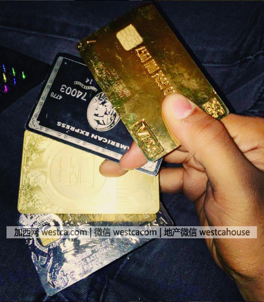 圖為手持多張金卡、黑卡的埃文,他在社交平台上說:“這麼多卡用哪壹張呢?真惆悵。”