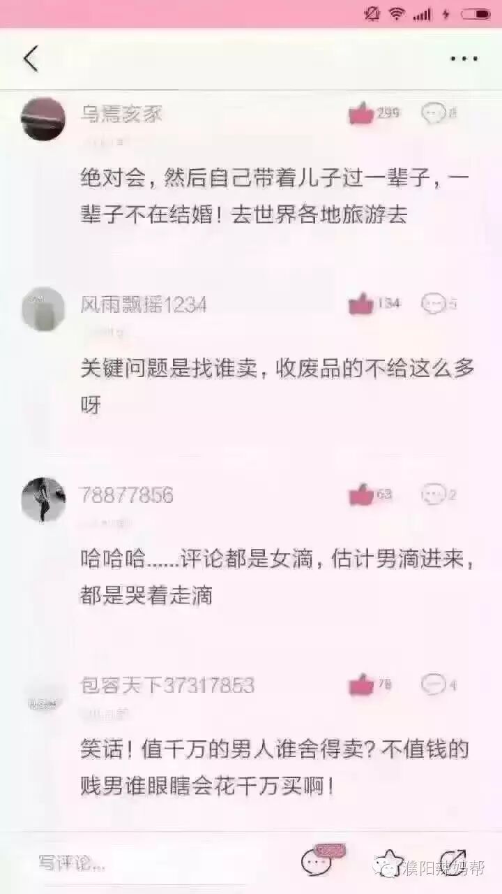 给你一千万,你会卖掉你的老公吗?各种神回复,碉堡了!