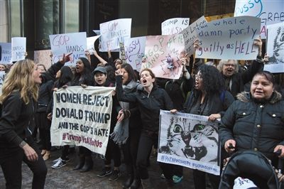 當地時間10月12日,美國紐約(专题),大批女性民眾在特朗普大廈前集會抗議美國總統候選人特朗普。圖/視覺中國