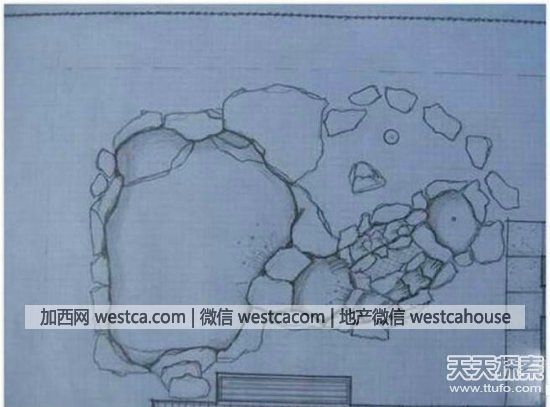 首先,他准备好了一张设计图,在草图上能够看到有主池和石窟等。当确认草图没有问题之后,他就准备开始工作了。他将空地挖了一个一公尺多的大坑,考虑到安全性的问题,他在大坑的周围搭建一个挡土墙增加安全性。
