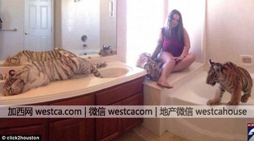 奇葩女子Trisha Meyer非常喜欢在家中养一些与众不同的宠物,比如老虎,美洲狮,狐狸等这样极具攻击性的动物,并且更让人意想不到的是,她居然对这些危险动物采取散养的方式,这些狮子老虎经常会在Trisha Meyer的家中肆无忌惮的散步。