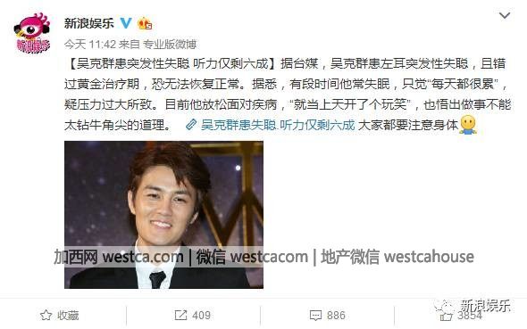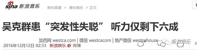 台媒說吳克群是左耳突發性失聰,並且已經錯過了黃金治療期,恐怕無法恢復正常。