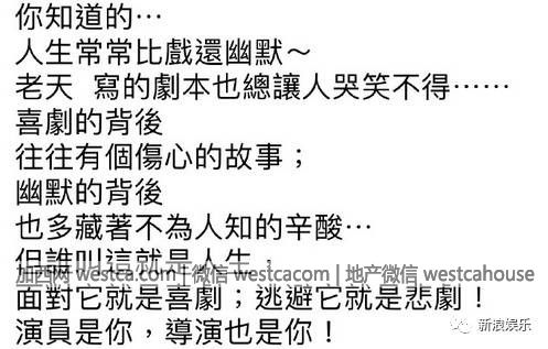 然後說人生常常比戲還幽默,老天寫的劇本也總讓人哭笑不得。面對它就是喜劇;逃避它就是悲劇,演員是你導演也是你!