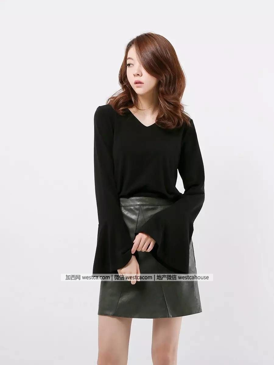MAGJAY | 喇叭袖V領混紡T恤