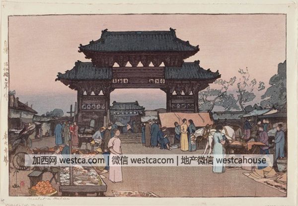 日本畫家吉田博繪制的北市場老牌坊