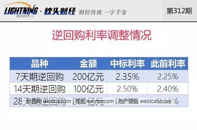 【央行又“加息”了!】“加息”之所以要打上引號,是因為這裡的加息不同於通常意義上央行直接對存貸款基准利率的調整,而是央行定點或者在特定環節將利息抬高。2月3日,央行全面上調了逆回購的中標利率:進行200億元7天期、100億元14天期、200億元28天期逆回購;同時公開市場有1200億逆回購到期,因此當日淨回籠700億,連續伍日淨回籠。所謂逆回購,是指央行向銀行等金融機構購買有價證券,並約定在將來特定日期買回。簡單理解,逆回購是央行放水,逆回購到期則意味著央行要將之前放的水抽回來。逆回購相當於央行給銀行借錢,逆回購利率提高,意味著銀行從央行那裡借錢的成本提高了,銀行的成本自然會轉嫁到下游,進而將利率抬高的影響傳導至整個經濟體。