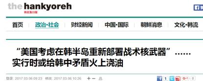 可不论美国是出于什么目的,这《纽约时报》宣称特朗普考虑在韩国部署核武器的消息,还是让韩国社会颇为震动,不少韩国进步的左翼媒体更对此表达了极为强烈的担忧。