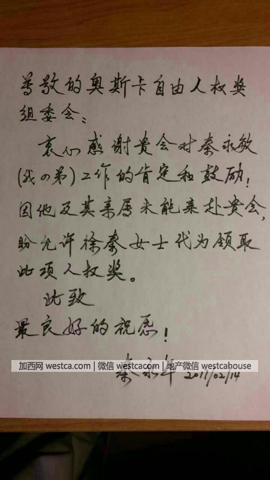 秦永敏哥哥秦永年的感谢信