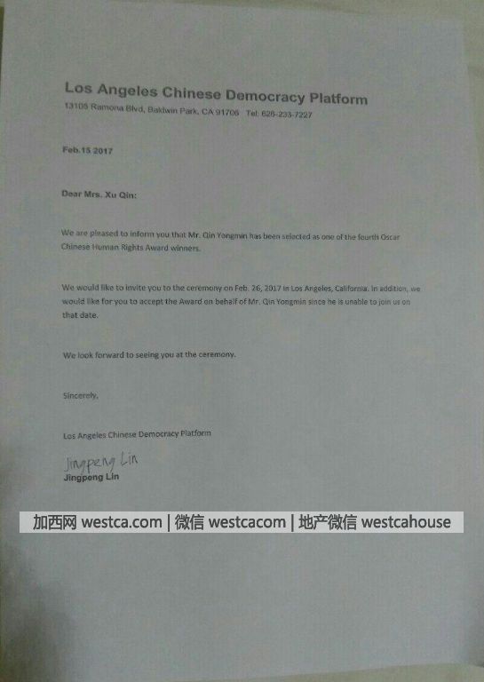 当由秦永敏先生发起的拟组建中国人权观察同仁及一直坚持在中国大陆公开发声的玫瑰团队全体成员获知秦永敏理事长获得美国奥斯卡人权奖无不感到荣耀和振奋。