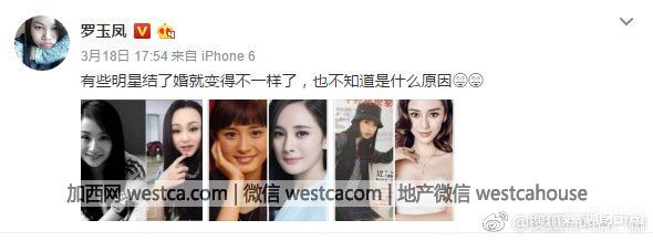 網路紅人鳳姐羅玉鳳18日在微博曬出楊冪、Angelababy等人婚前婚後對比照,並表示有些明星結了婚就變得不壹樣了。