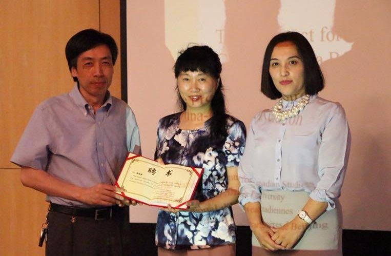 大會是由《2016加拿大政策發展報告》副主編之壹王文麗老師主持。北京外國語大學加拿大研究中心主任劉琛首先代表教育部區域和國別研究基地和加拿大研究中心,對各位來賓表示敬意。她指出中加兩國各領域交流具有很深遠的意義。她強調去年李克強總理訪加之後,在很多場合肯定中加關系的重要性。由於時代的需要,因此今年出版了《2016加拿大政策發展報告》。這本學術專著共分伍個部分:外交、教育、法律、能源與環境和移民。劉琛主任希望該書能為中、加兩國交流做出壹些貢獻。隨後她介紹了這本書的編委、各板塊負責人和作者,並宣布聘請賈葆蘅女士為北京外國語大學加拿大研究中心客座研究員。北京外國語大學英語學院院長張劍給賈葆蘅頒發了聘書。