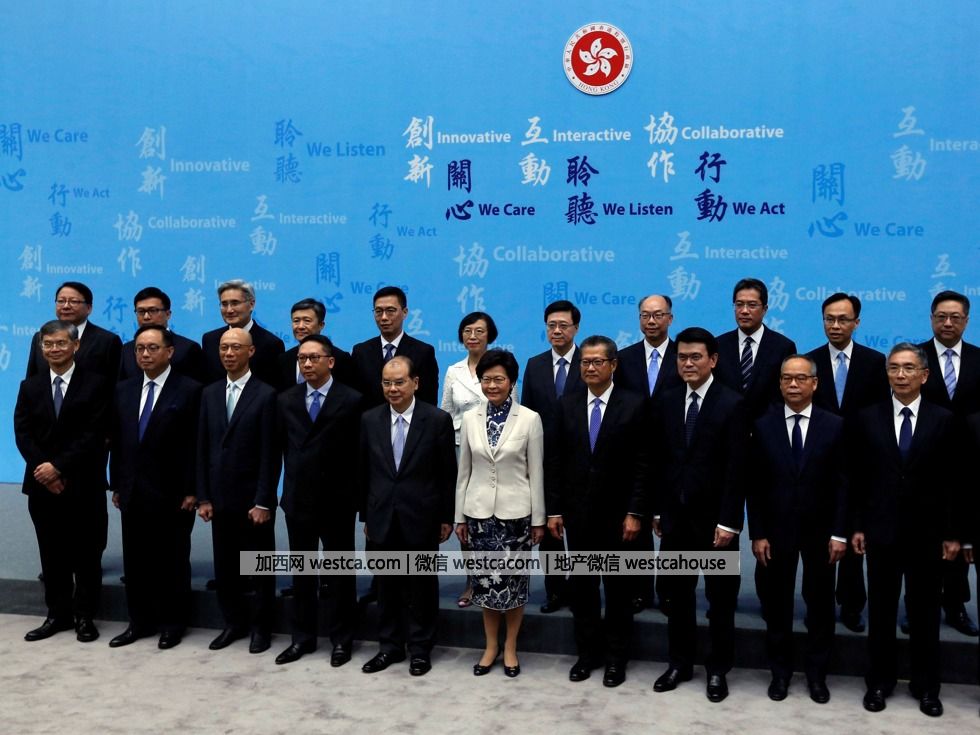 林鄭月娥(左六)公布新政府官員班底(圖源:VCG)