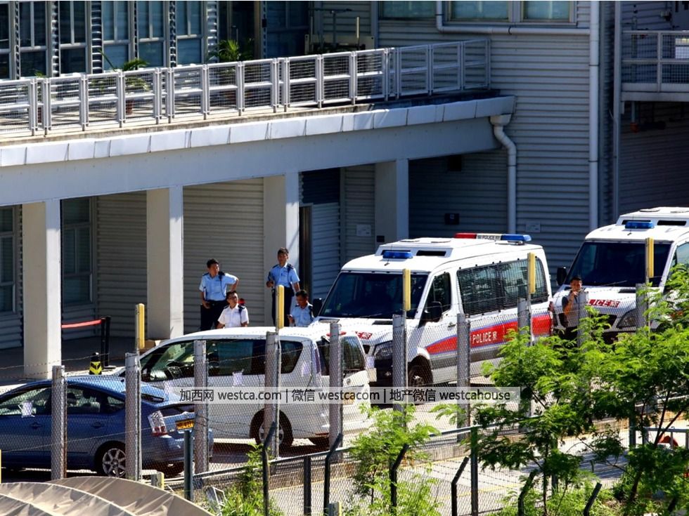 西九文化區管理局的西九項目辦公室外,有多輛警車駐守,不時有警員出入及於海旁巡視,相信同樣為習近平訪港作准備。(圖源:香港01/魯嘉裕攝)