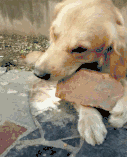 雖說金毛聰明,但是蠢起來恐怕拾個贰哈也比不過它。真想問問它這磚頭到底啥味兒這麼好吃!