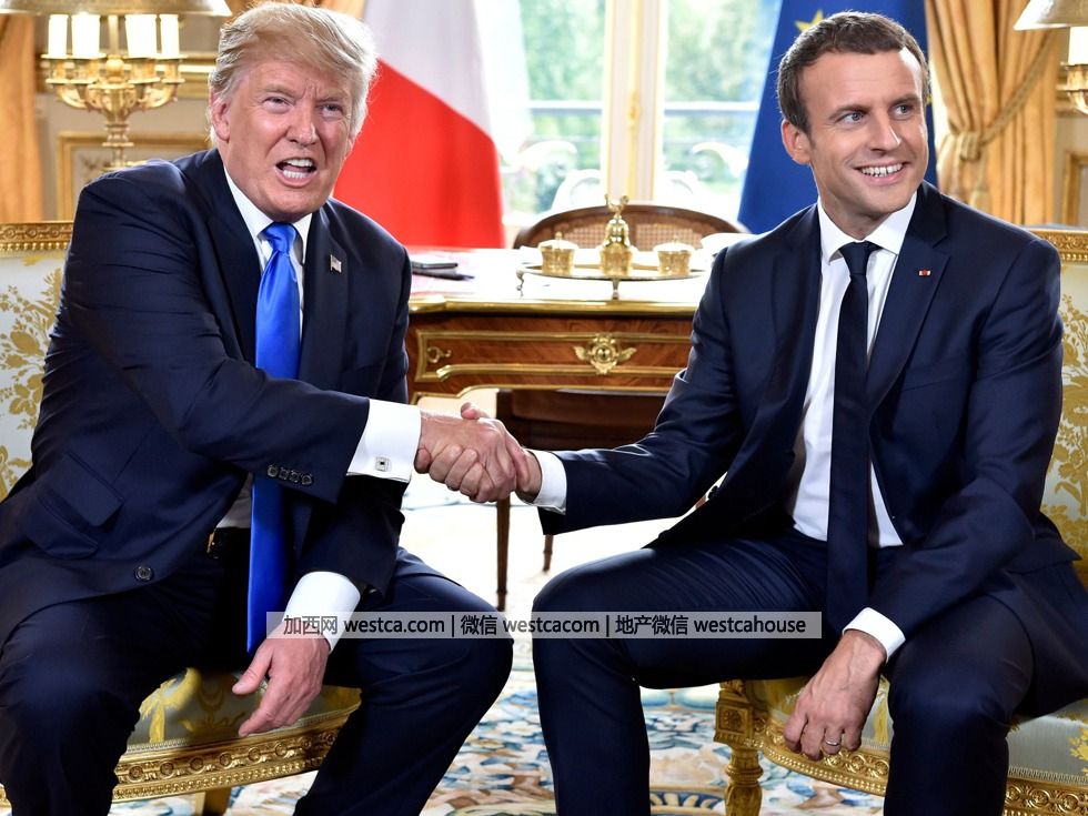 特朗普首先於13日與法國總統馬克龍舉行會談,就敘利亞、反恐及氣候等多項議題交換看法。(圖源:VCG)