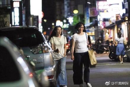 她和朋友逛街,衣服穿得也很隨意,臉上似乎連妝都沒化
