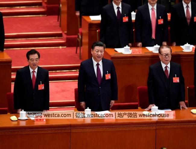 中共第19次全國代表大會今天在北京開幕,中共總書記習近平在開幕式上作報告。前中共總書記江澤民、胡錦濤上午出席開幕式時,走在習近平後面。李鵬則走在胡錦濤身後。