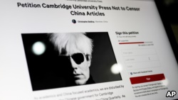 號召敦促英國劍橋大學出版社不要屈從於中國新聞檢查壓力的網頁