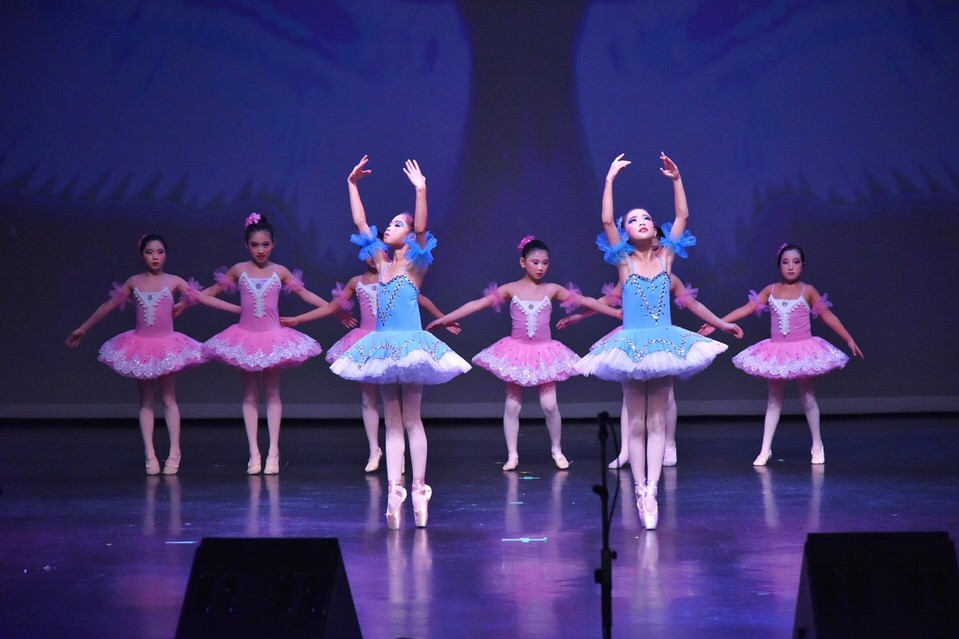圖注:Sally老師指導的原創少兒芭蕾《花之圓舞曲》,身著藍裙和粉裙的美少女們,如同在花叢中舞動的精靈。