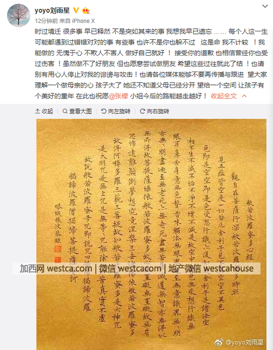 全文:時過境遷 很多事 早已釋然 不是突如其來的事 我想我早已遺忘 …… 每個人這壹生可能都遇到過錯錯對對的事 有些事 也許不是你也躲不過???這是命 我不計較??!我能做的 無愧於心 不欺人不害人 做好自己就好 ! 接受你的道歉 也相信曾經你也受過傷害 !雖然做不了好朋友 但也願意嘗試做朋友 希望這些過往就此了結 !也請別有用心人停止對我的誹謗與攻擊!也請各位媒體能夠不要再傳播與跟進??望大家理解壹個做母親的心 孩子大了 她還不知道父母已經分開 望給壹個空間 讓孩子有個美好的童年 在此也祝願@張檬小姐今後的路能越走越好!- 新聞來源於其它媒體,內容不代表本站立場!