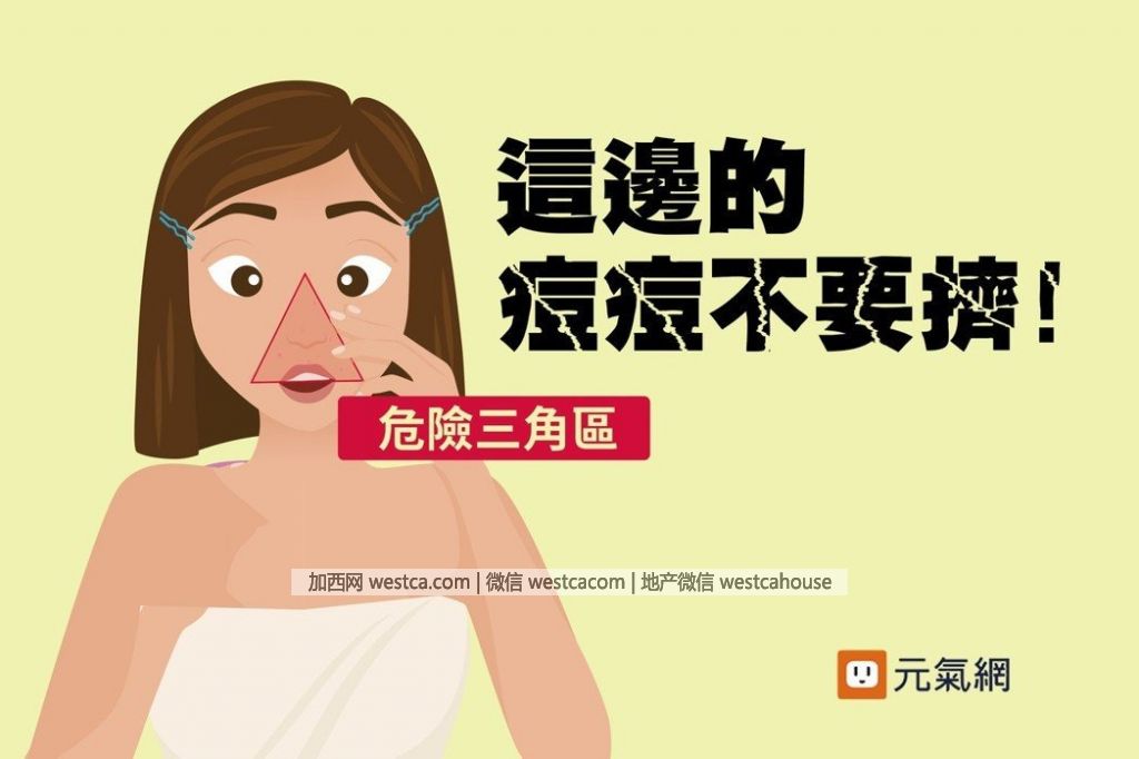 醫師建議在這叁角區出現痘痘的初期,不可隨意搔抓或擠壓,也不能太早挑刺或切開,這樣會使皮膚組織毛細血管損傷,讓細菌入侵。如果出現眼瞼水腫、視力障礙、全身發冷、發燒頭痛等症狀,代表已顱內感染,要及早就醫。