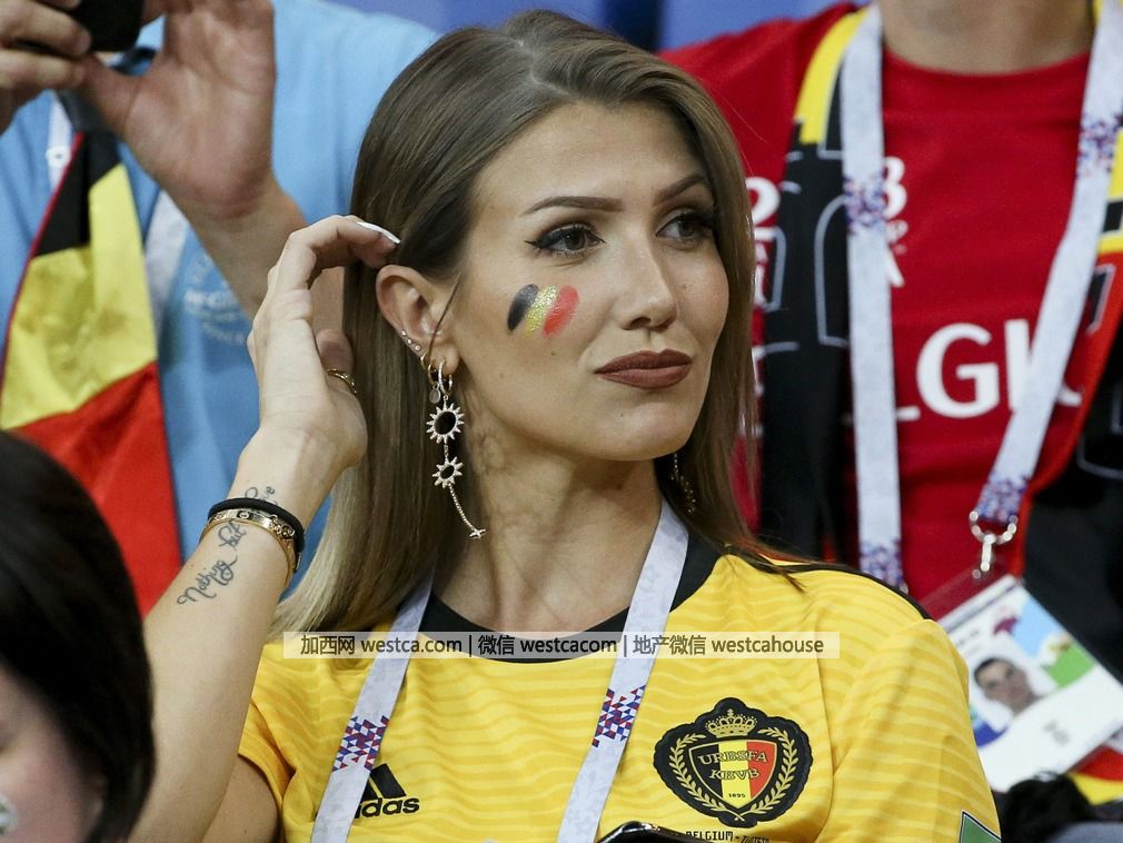 在當地時間2018年7月11日凌晨結束的世界杯半決賽上,比利時隊以壹球之差輸給法國,令球迷們無比遺憾。比利時球隊雖然輸了比賽,但是看台上的“太太團”卻贏了!首先出場的這壹位是中場大將卡拉斯科(Yannick Ferreira-Carrasco)的女友諾埃米·哈帕特(Noemie Happart)。