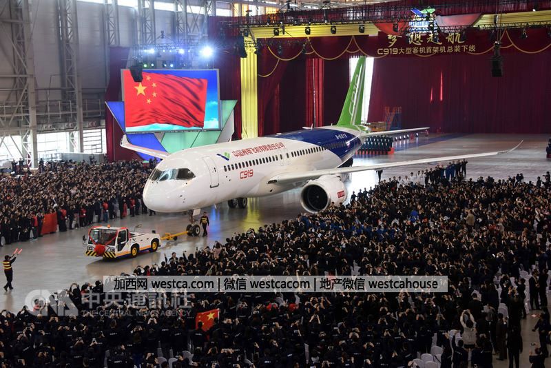 中國工業和信息化部副部長辛國斌13日表示,中國制造業創新力薄弱,核心技術短缺的局面尚未根本改變。圖為大陸自主研制的C919客機,但工信部指出,航空發動機與絕大多數精密零組件的生產、檢測設備仍仰賴進口。(中新社提供)中央社107年7月13日