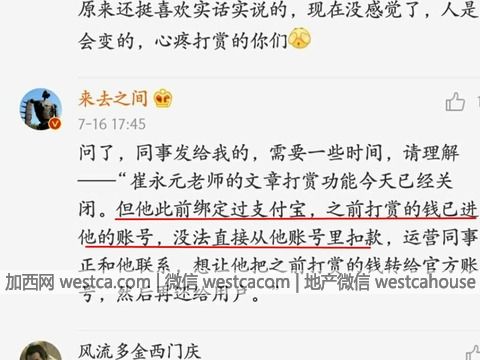 對於崔永元微博壹事,微博CEO發微博回應稱,崔永元之前綁定過支付寶,網友的錢都已經進入他的支付寶賬號。