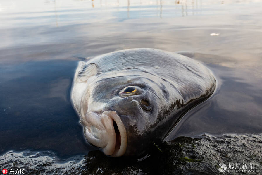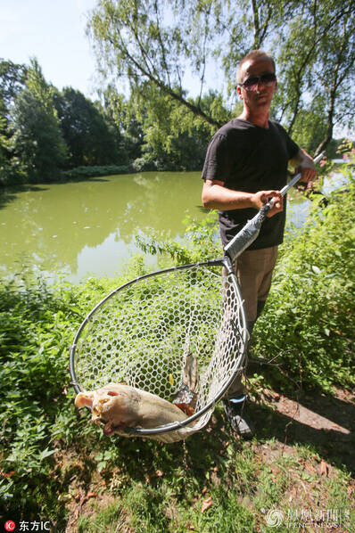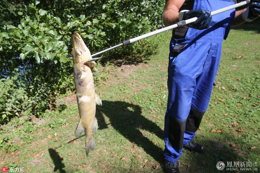 當地時間2018年8月1日,德國漢堡,近6噸死魚漂浮在水面上。
