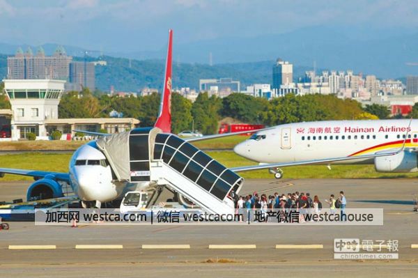 圖為桃園機場旅客搭乘接駁車到接駁坪上飛機。(圖片源自“中時電子報”)