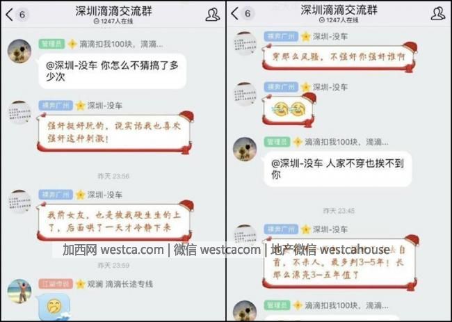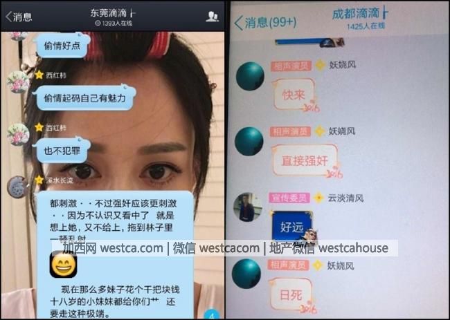其中壹個有1232名成員的"武漢滴滴官方群",有人在群組裡貼出受害女死者的照片後,其他成員留言熱議其樣貌。其他地方如東莞滴滴、成都滴滴、深圳滴滴等有逾千名成員的司機交流群中,成員們的對話拾分冷血,"玩就玩唄,別搞死呀"、"強奸是不是很刺激"、"我要是那個司機,強奸了再去自首,不殺人,最多判3至5年,長那麼漂亮也值了"。