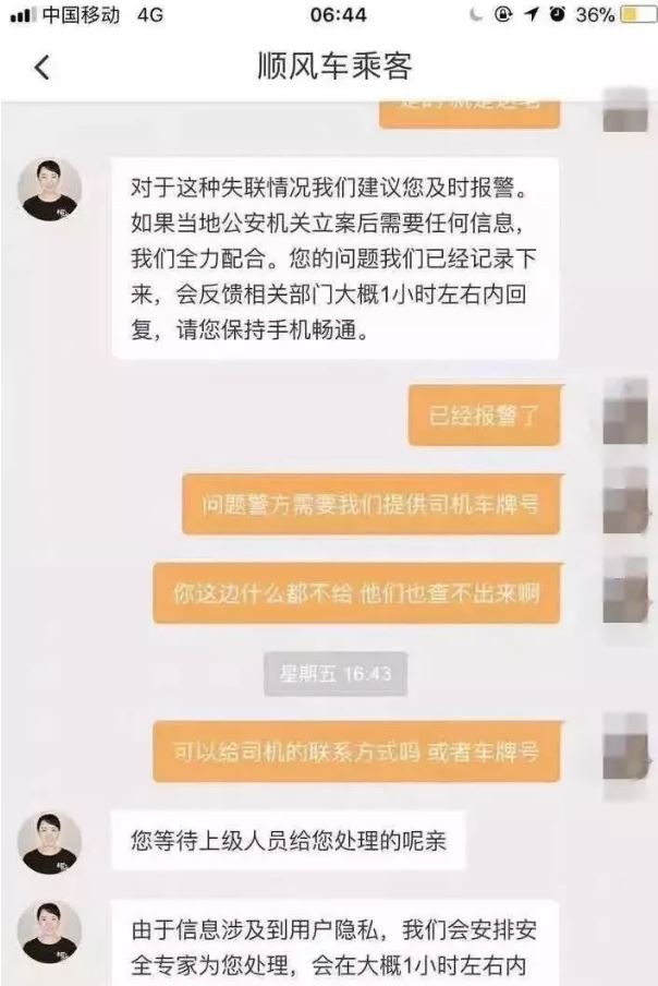 甚至在警察表明身份后却要警察等待滴滴安全专家的反馈。