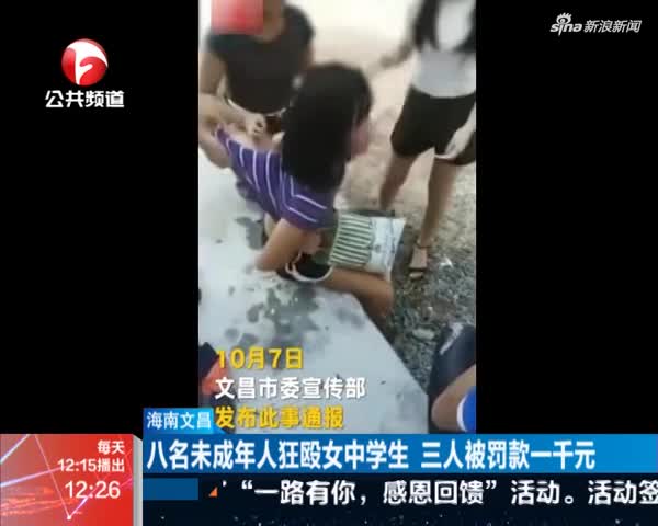 韓潔:文昌官方就事件首次通報表示,由於參與圍毆的8名男女未成年,因此不屬於校園欺凌。大批民眾在網絡上評論質疑當局的回應。文昌官方10月7日公布處理結果,打人者並沒有受到懲罰。