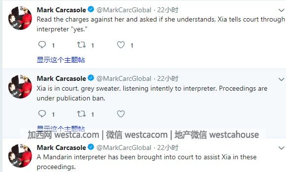夏姓女子於昨天在奧羅拉出席保釋聽證會,法庭提供普通話翻譯。