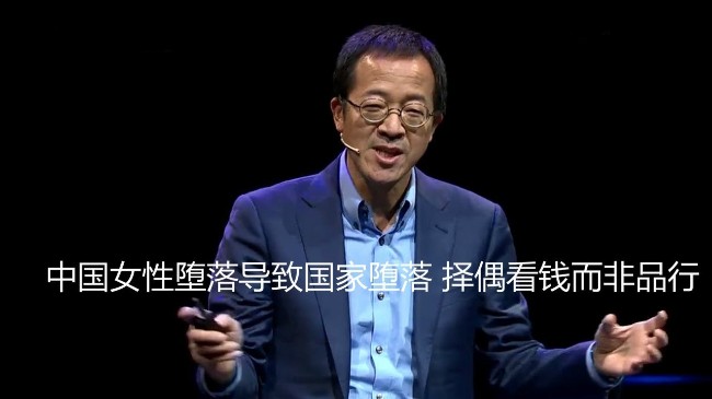 “如果說所有的女生都說中國男人就是要賺錢,至於良心好不好我不管,那所有的中國男人都會變得良心不好、但是賺錢很多……現在是因為中國女性的墮落導致整個國家的墮落。”