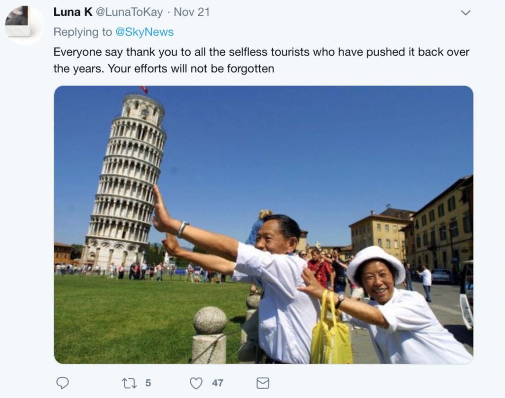 還有網友稱,“很顯然,是所有這些游客把它給推回去的”。