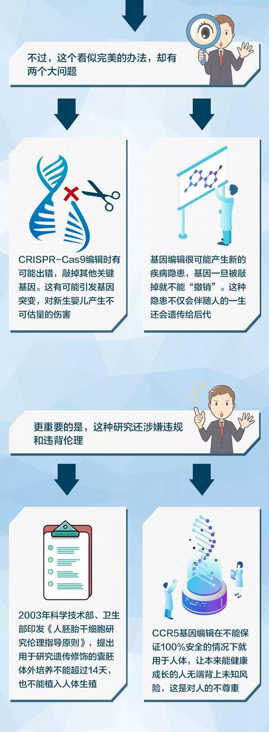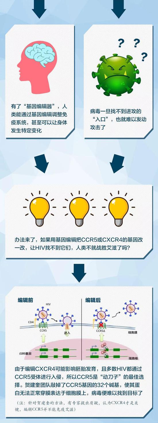 雖然事件本身在網絡上引起熱烈討論,但很多網友對基因編輯的原理或許並不熟悉。基因編輯抵抗艾滋病究竟是如何實現的?為什麼倫理問題如此受到關注?在遙遠的未來,基因編輯能為人類的生活作出貢獻嗎?看完下面這張圖,你就了解了。