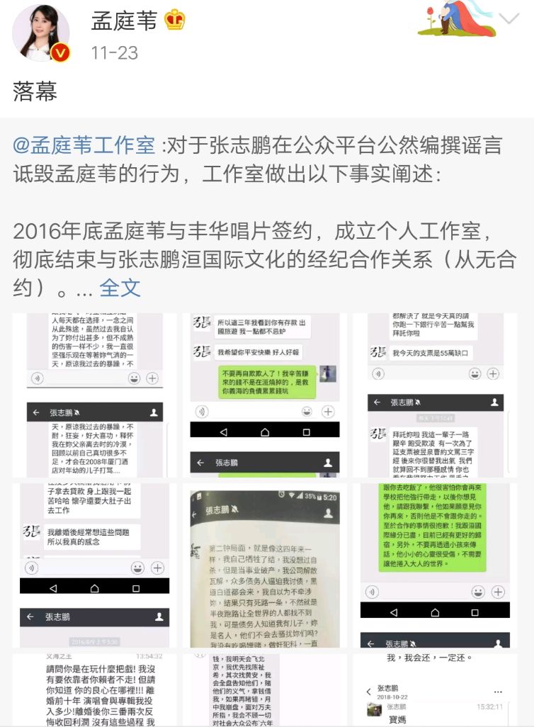張暖雅壹方撕來撕去並沒有什麼實錘,倒是從孟庭葦曬出的聊天記錄裡看出:前夫張志鵬不僅有家暴行為,還自私冷漠長期吃軟飯,甚至孟庭葦懷著孕還要登台演出賺錢養家。