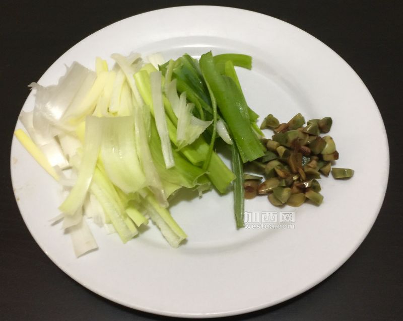 食材:豬肝,青蒜,姜,蔥,臘八蒜和調料