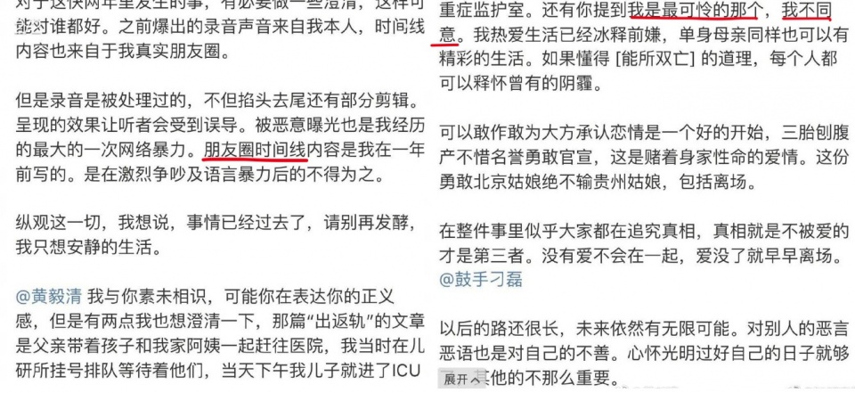 3月1日,黃毅清發布壹條消息,指刁磊在2017年9月份,瞞著何潔與前妻和兒子見面出街。更是調侃“花式吃軟飯”、“出返軌”。還科普刁磊的在上壹段婚姻中,基本是前妻在承擔婚內支出。口不留情。這段花式嘲諷沒迎來何潔刁磊的反擊,卻在3月3日,迎來了刁磊前妻的本尊回應。