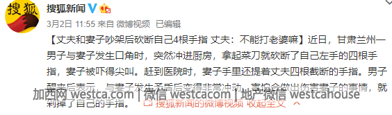 說的是甘肅蘭州壹男子與妻子發生口角時,突然沖進廚房,拿起菜刀就砍斷了自己左手的肆根手指,妻子被嚇得尖叫。夫妻倆趕到醫院時,妻子手裡還提著丈夫肆根截斷的手指。